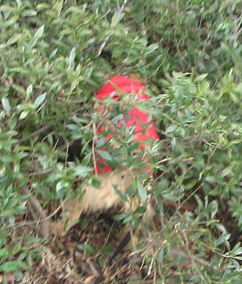 、低木の茂みの中に頭をつっこんで、どんどん進んでいきます